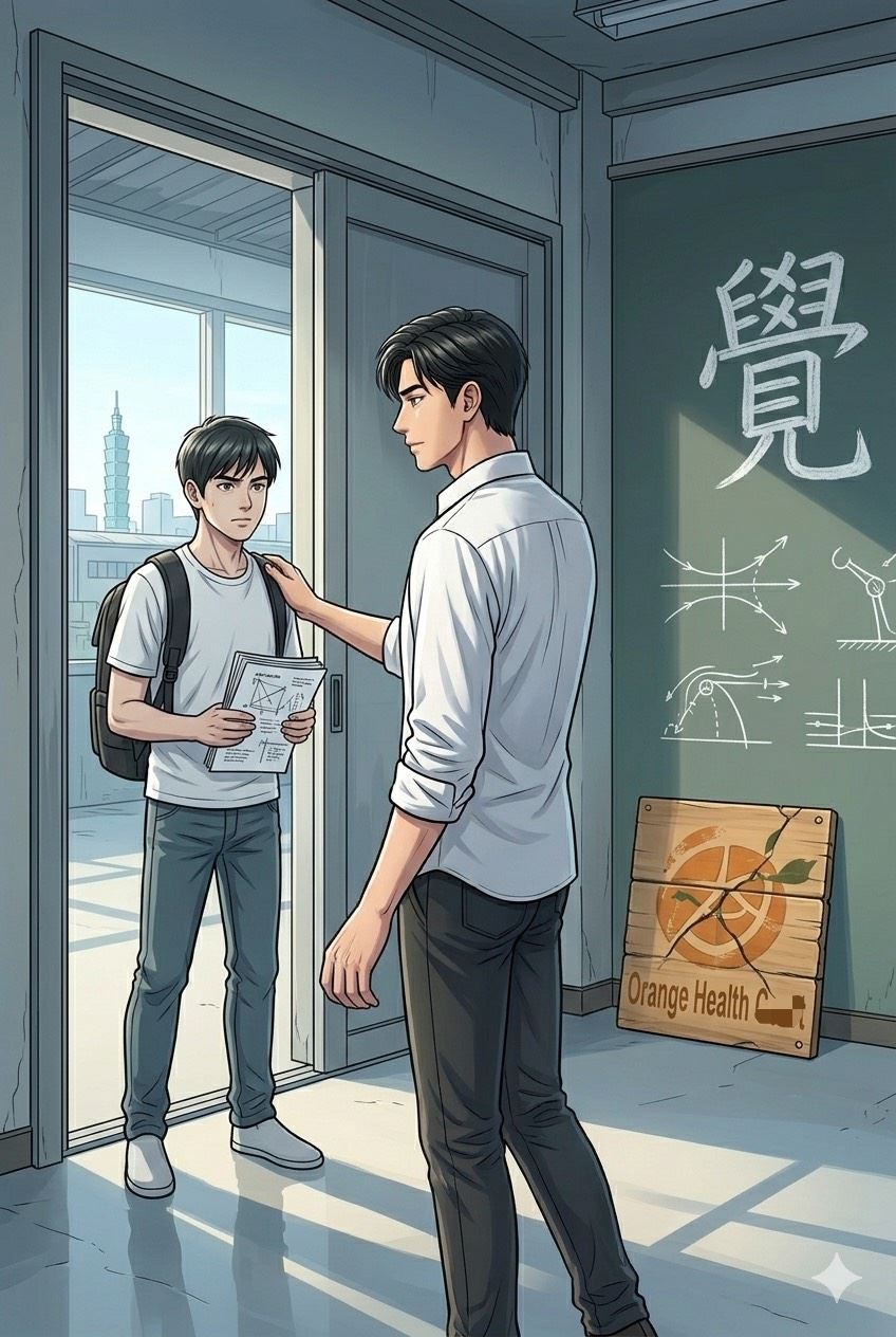 林誠看著阿強,又看了看牆上那個「覺」字。他站起身,走到阿強身邊,像以前一樣,輕輕拍了拍他的肩膀。
